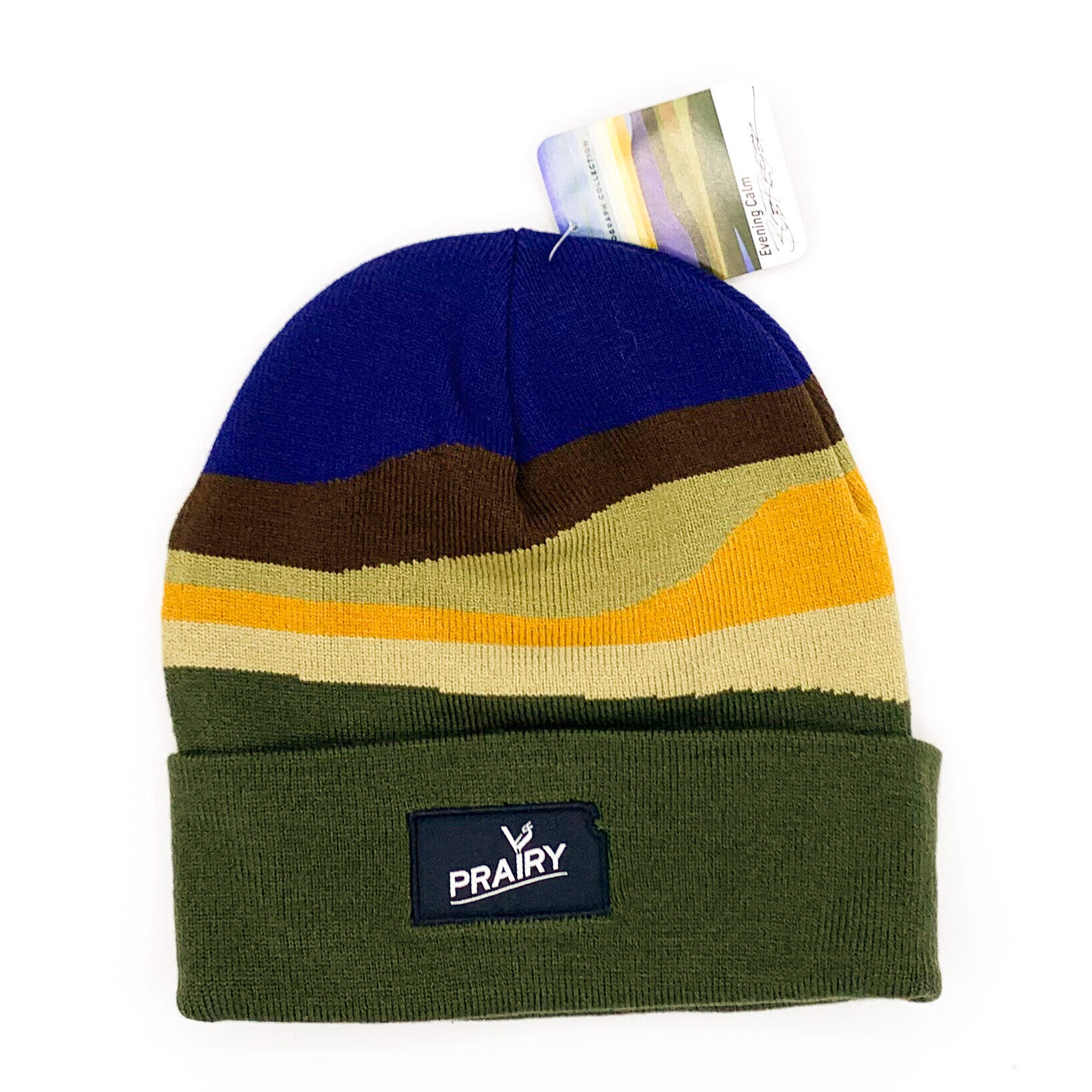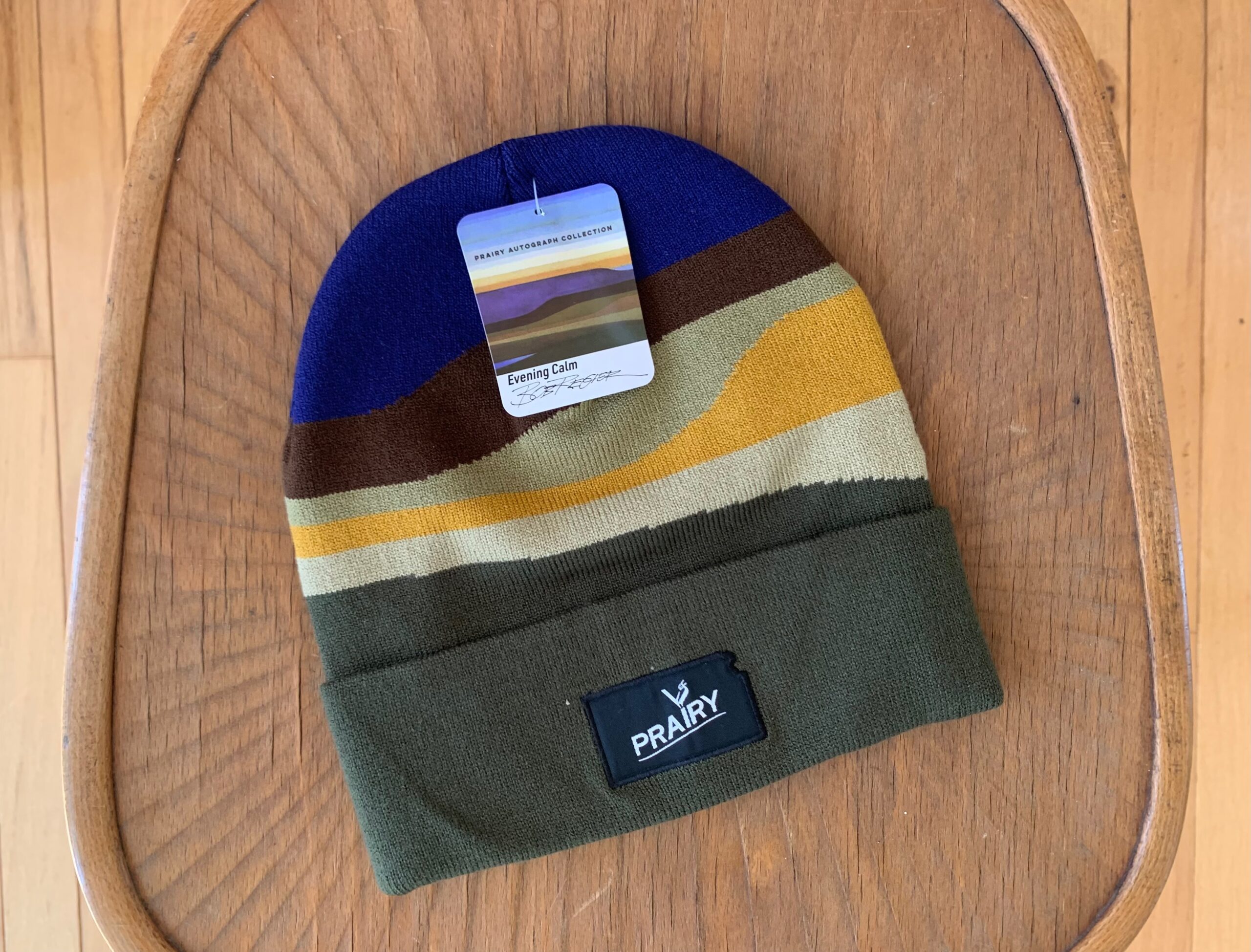 Inspired by the deep toned layers of rolling hills in the artwork Evening Calm, a pastel depiction of the Flint Hills by Kansas artist Bob Regier, this beanie is rooted in and designed for use on the prairie!